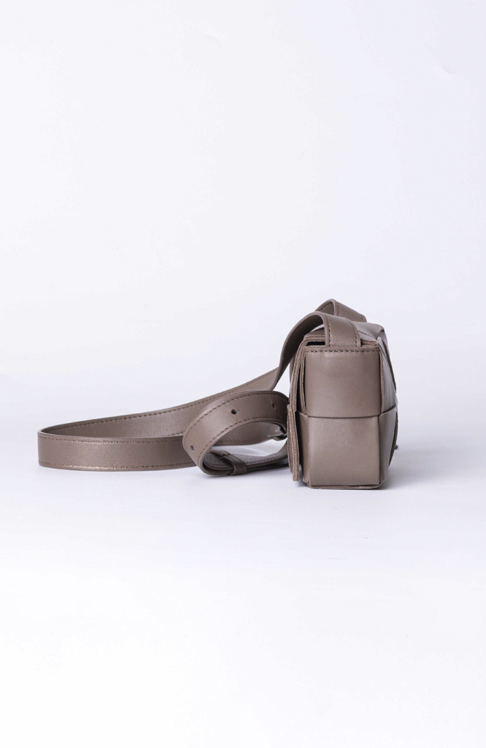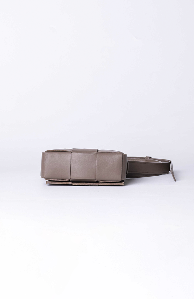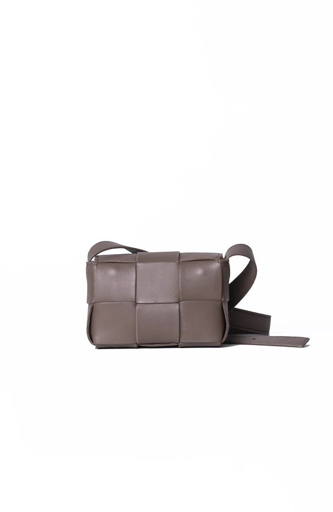 - Confeccionada em couro lambskin marrom acabamento intreccio