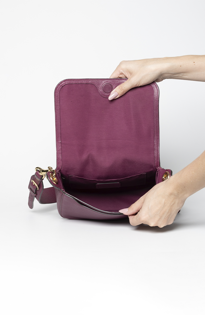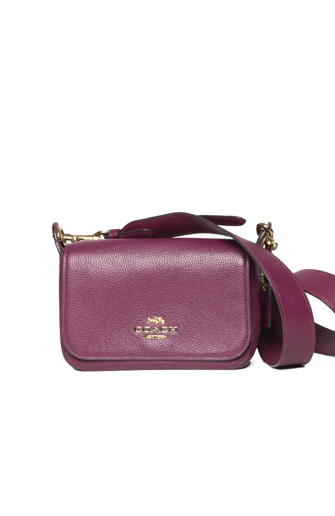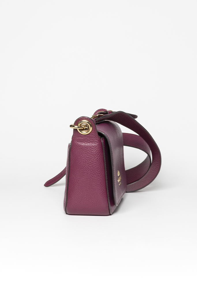 • Confeccionado em couro de seixo refinado lilás