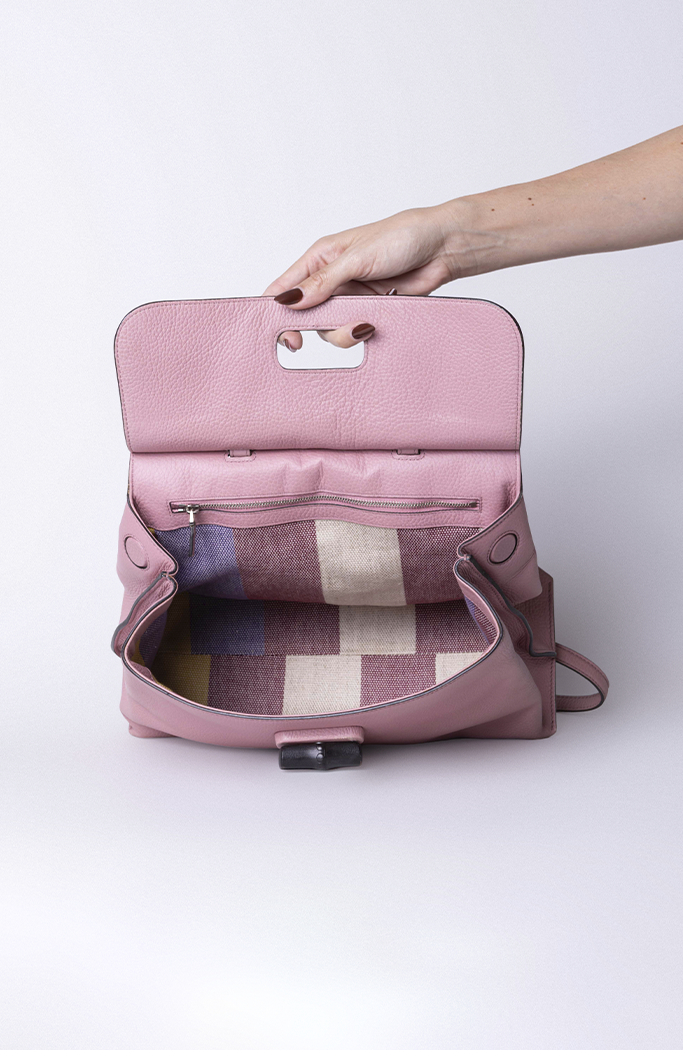 - Compartimento único com três bolsos internos, sendo dois abertos e um fechado por cursor