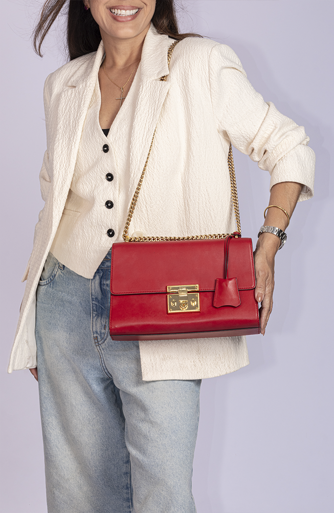 Condição: produto em excelente estado, couro preservado, com leves marcas de uso no couro. Ferragens e corrente com sinais de oxidação.
