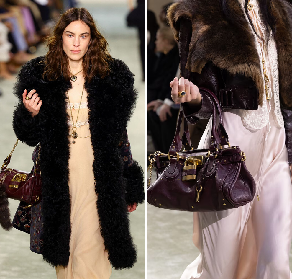 Durante o último desfile de outono/inverno na Semana de Moda de Paris, a atual diretora criativa da Chloé, Chemena Kamali, resgatou a icônica bolsa para as passarelas. O design original foi preservado, mas a nova versão ganhou leveza — o cadeado, antes pesado e motivo de críticas, foi redesenhado para tornar o uso mais confortável, sem perder o charme maximalista.
