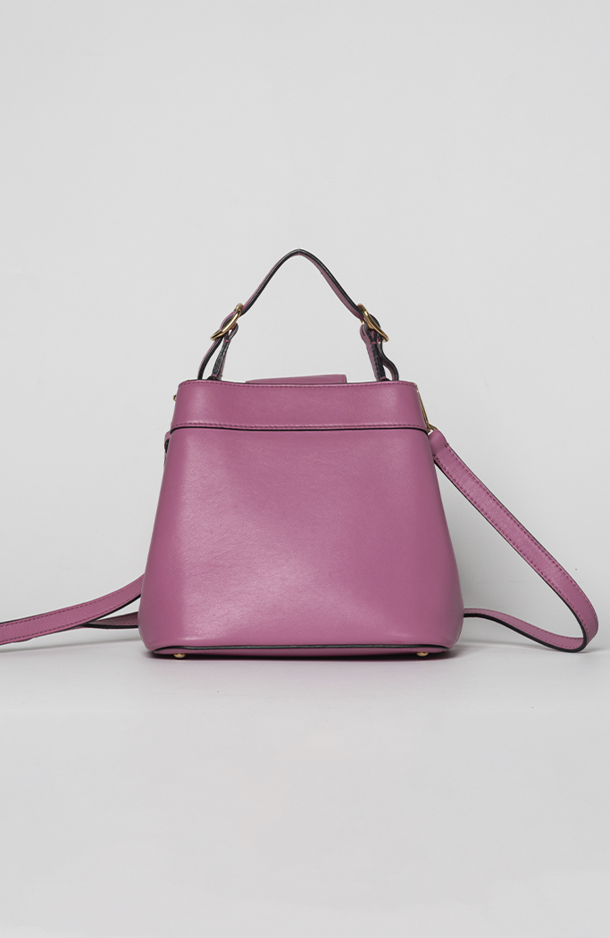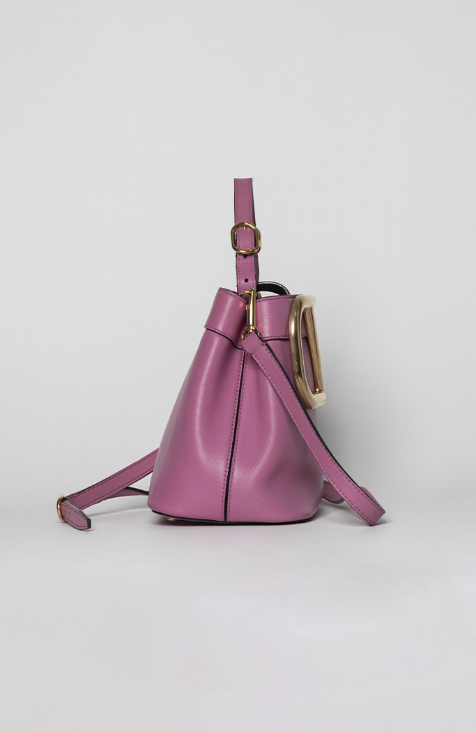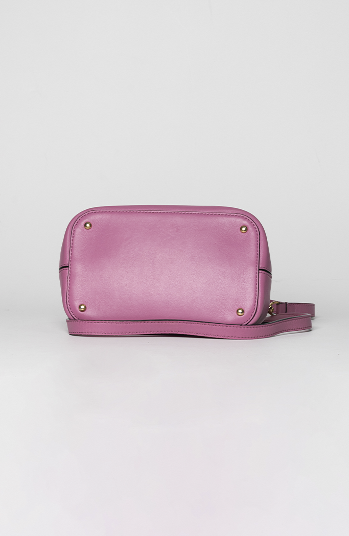 - Confeccionada em couro na cor rosa
