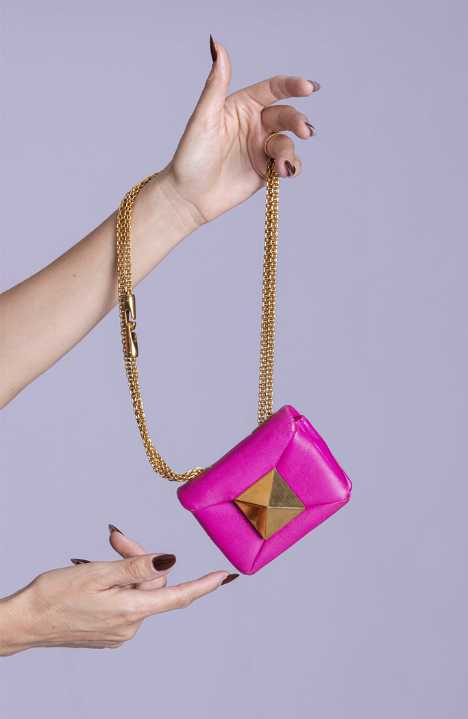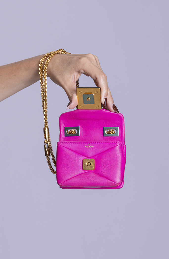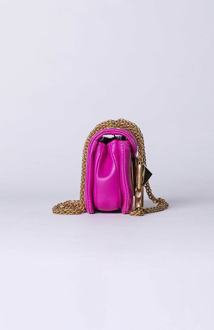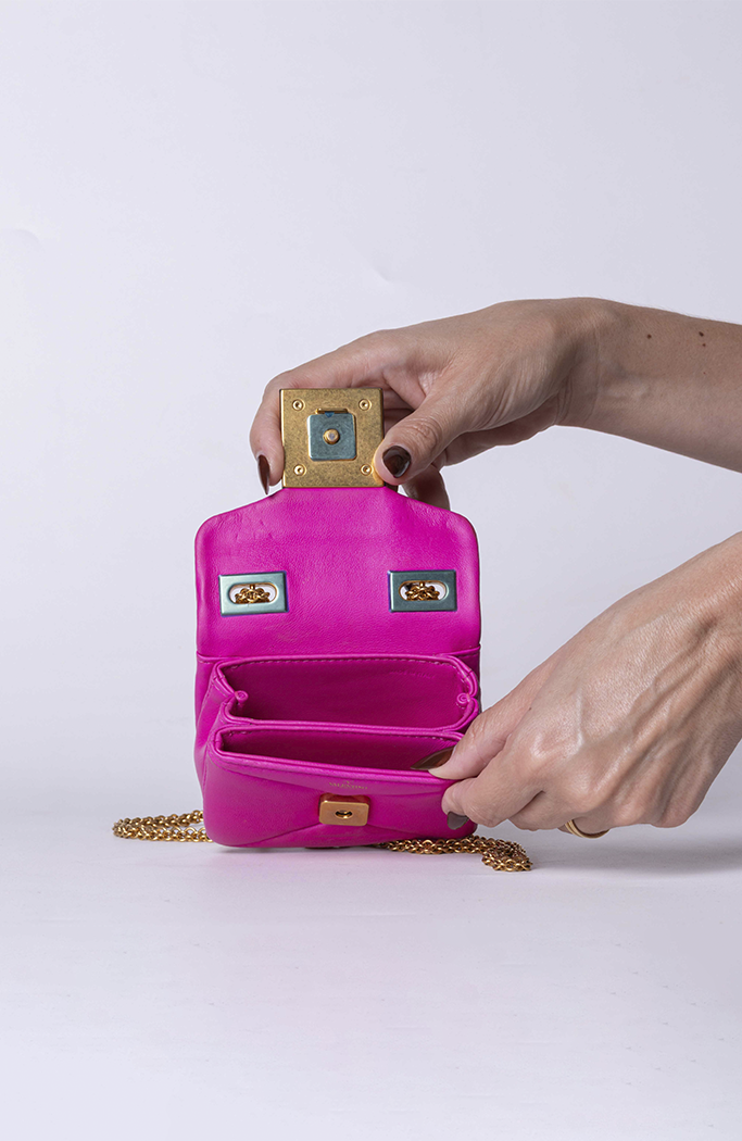 - Confeccionada em couro nappa na cor rosa pink
